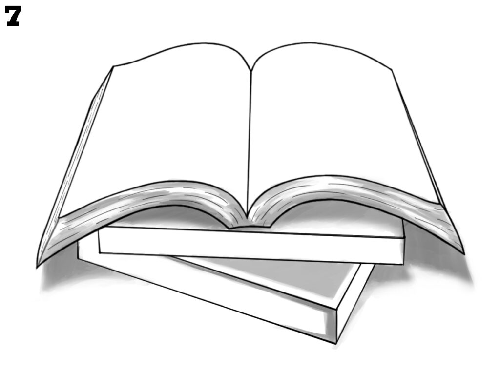Add light shading to the pages and covers to give depth. Shade slightly under each book to make them look like they are resting on each other. Keep the shadows soft for a simple but clear finish to your drawing.