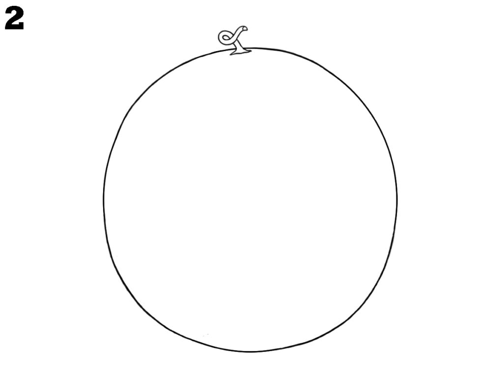 Now, draw a small curly stem on the top middle part of the circle. This stem is where the watermelon was connected to the plant. Just make a small loop with a tiny tail to one side. It should look simple and sit gently above the circle without changing its shape.